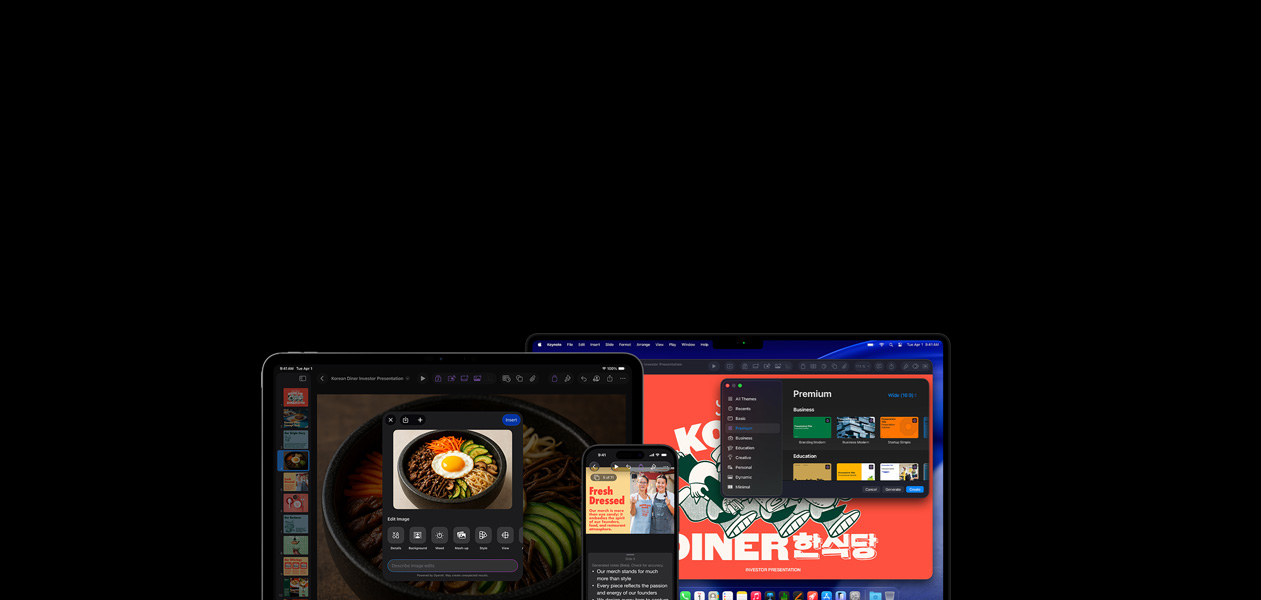 أنشئ عروضاً تقديمية لا تُنسى وتعاون في الوقت الفعلي بفضل مؤثرات وأدوات سهلة الاستخدام. وعند اشتراكك في باقة Apple Creator Studio، يمكنك الوصول إلى محتوى متميز وميزات ذكاء كلها قوة.