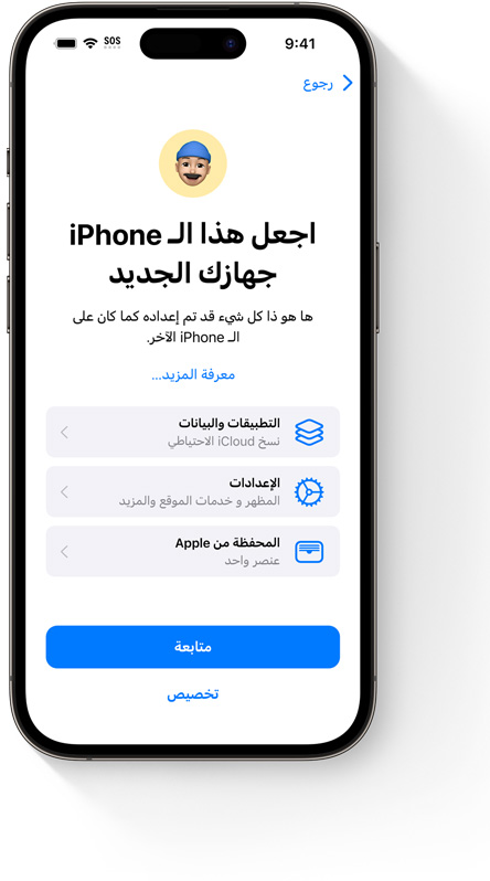 قم باستعادة جهازك أو بإعداد جهاز جديد من النسخ الاحتياطية على iCloud لتحصل ببساطة على كل صورك وملفاتك وجهات اتصالك وتطبيقاتك وإعداداتك والمزيد، ويكون جهازك الجديد تماماً مثل الجهاز السابق.