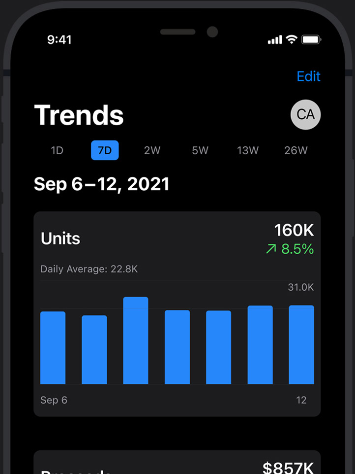 Each month, we analyze billions of anonymized data points that give developers valuable business insights through App Store Analytics.