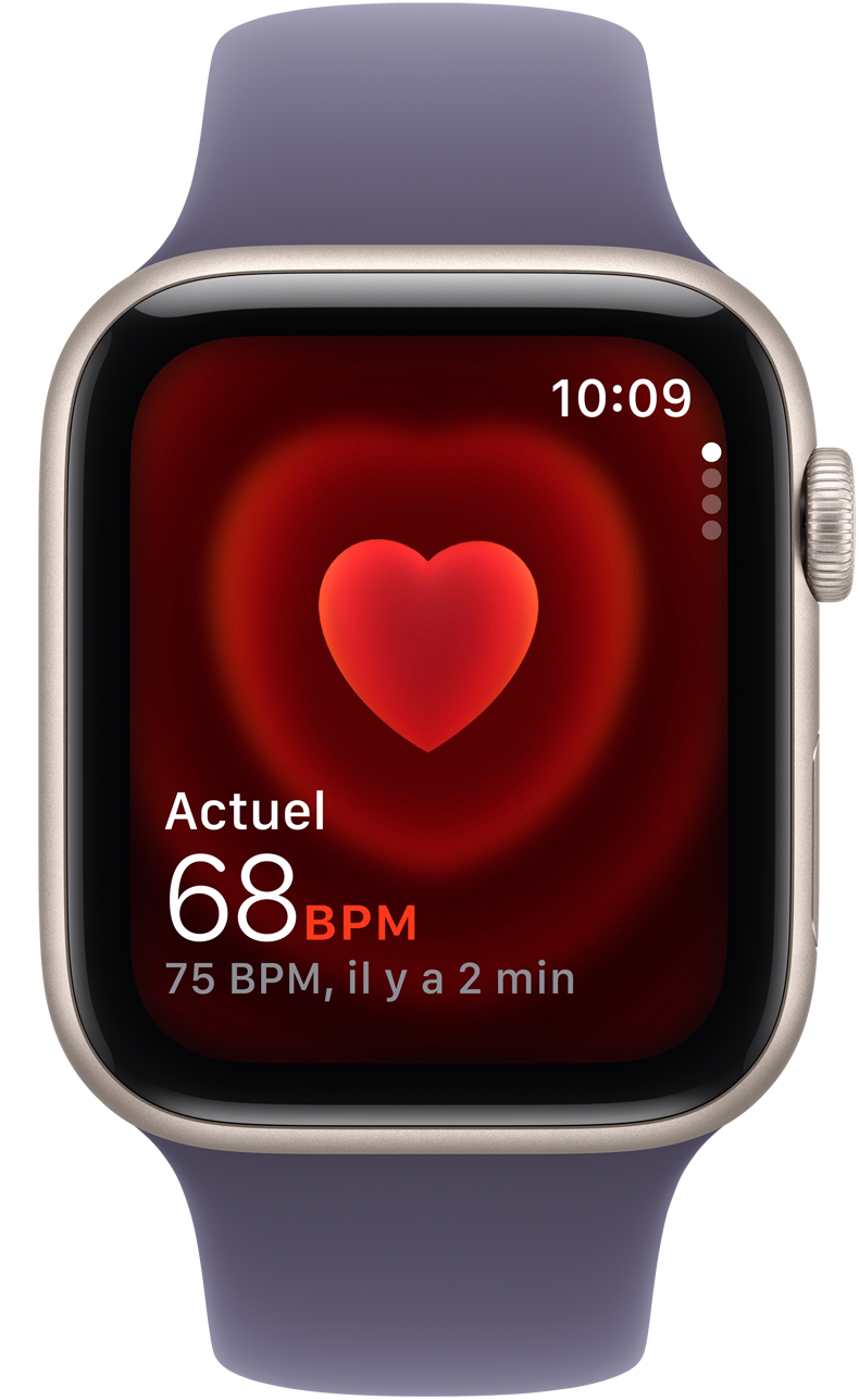 Mesurez vos pulsations à tout moment avec l’app Fréquence cardiaque. Et recevez des notifications en cas d’arythmie ou de fréquence faible ou élevée11.