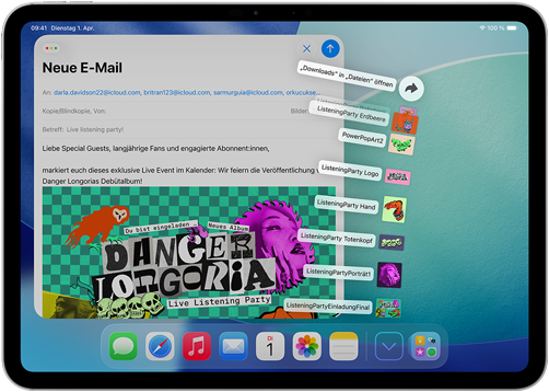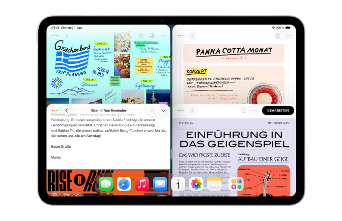 Auf dem iPad ist jetzt viel. Mehr. Möglich. Du kannst deine Dateien auf ganz neue Weise ver­walten, darauf zu­greifen und sie bear­beiten. Und dein iPad auch dann ver­wenden, während es große Dateien ver­arbeitet.