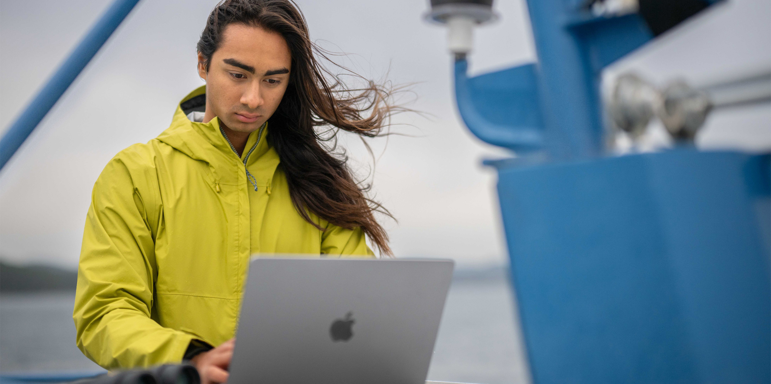 Apple technology also helps Bodhi conduct and synthesize his university research — like illustrating the impacts of marine vessel activity on the endangered Southern Resident Killer Whale population in the Salish Sea. Taking his MacBook Air, iPhone, and binoculars, he tackles the project’s fieldwork out on the water. He charts whale sightings by using Numbers and Keynote to create flowcharts and density maps that show where the locations intersect with popular ferry routes — helping to identify potential disturbances on resident whale populations. And on iPhone, he takes compelling photos and videos that document his findings.
