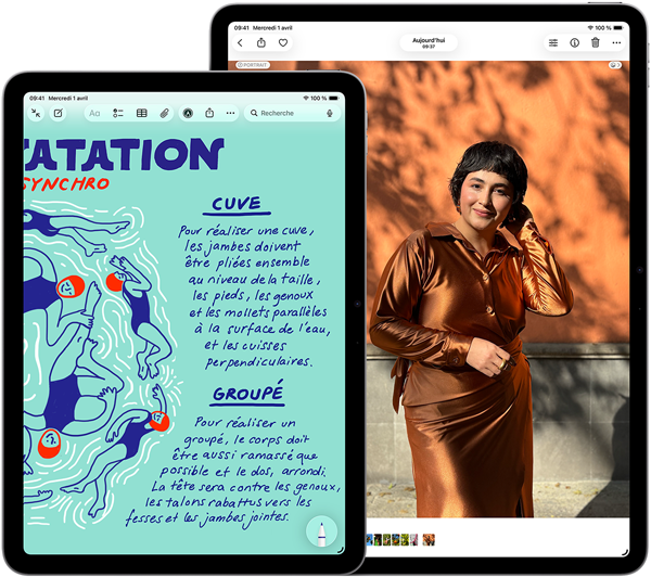 Grâce à une mémoire système unifiée 50 % supérieure, la fulgurante puce M4 livre des performances sidérantes pour sublimer tout ce que vous aimez faire sur l’iPad Air. Dotée d’une IA puissante, elle booste les outils et les capacités d’IA pour expédier vos tâches quotidiennes sans effort. Son architecture GPU offre des graphismes avancés encore plus fluides, que ce soit pour travailler, regarder des contenus en streaming, créer ou jouer. Et son incroyable efficacité énergétique assure une autonomie d’une journée entière4.
