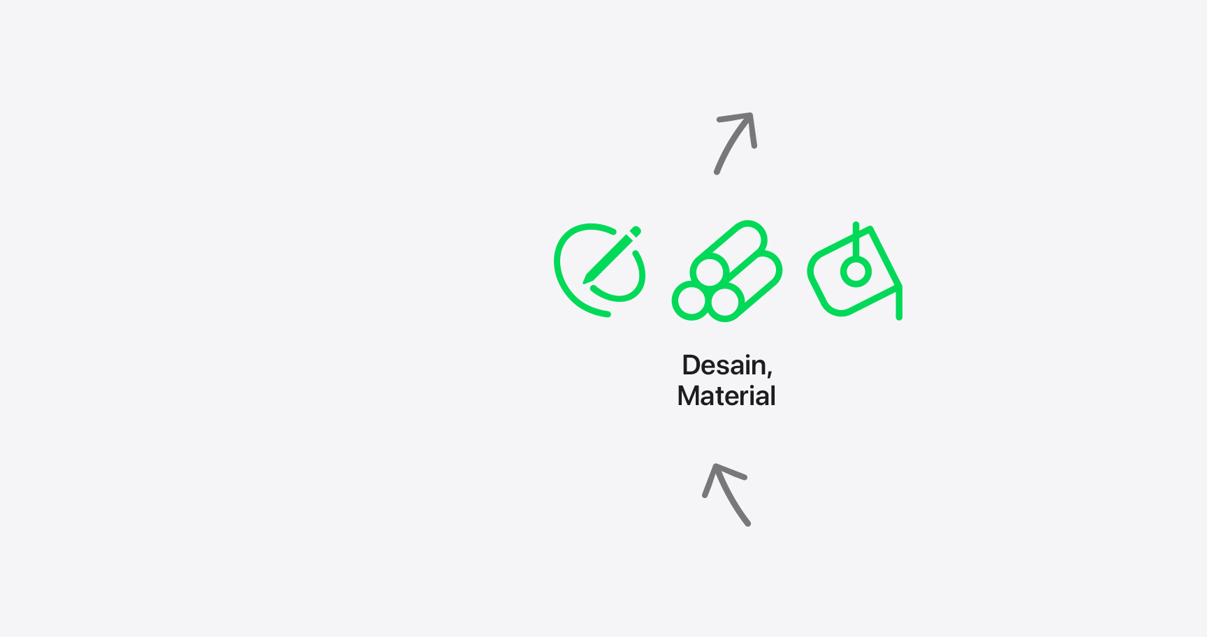 Desain dan Sumber. Kami mendesain produk kami menggunakan lebih banyak material daur ulang dan terbarukan. Semua material yang diperoleh pemasok kami, baik daur ulang maupun tidak, harus berasal dari sumber yang memenuhi standar kami yang ketat.