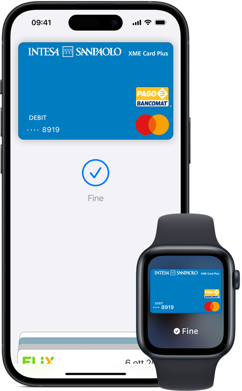 Apple Pay è disponibile nei Paesi e territori che supportano i pagamenti contactless. Verifica con la tua banca se sono previsti costi aggiuntivi per l’uso all’estero.
