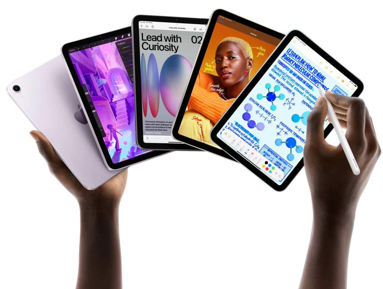 The blazing-fast A17 Pro chip makes iPad mini a portable powerhouse. It delivers a big boost in performance and it’s built for Apple Intelligence. The 16‑core Neural Engine is up to 2x faster than the previous generation. The 5‑core GPU brings advanced features like hardware‑accelerated ray tracing for graphically intense triple‑A games. And you can work, play, and create from anywhere with all‑day battery life.3