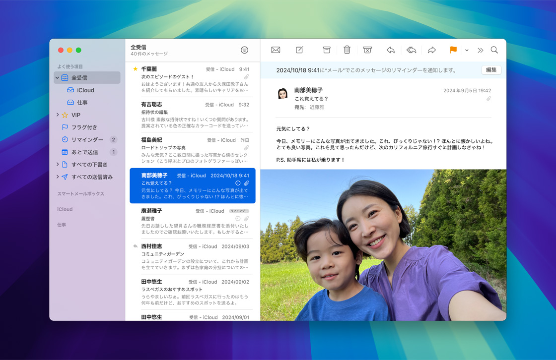iCloudメールは、iPhone、iPad、Mac上のメールアプリにシームレスに組み込まれた機能です。iCloud.comを使って、どこからでも簡単にEメールを送受信できるようにします。スパムからの保護やフィッシング対策などのセキュリティ機能も内蔵。迷惑メールを、受信ボックスに届く前に検出してブロックします。@icloud.comのEメールアドレスを設定する方法はシンプル。しかも、iCloud+のサブスクリプションに登録すると、あなた独自のドメインでEメールをカスタマイズできます。