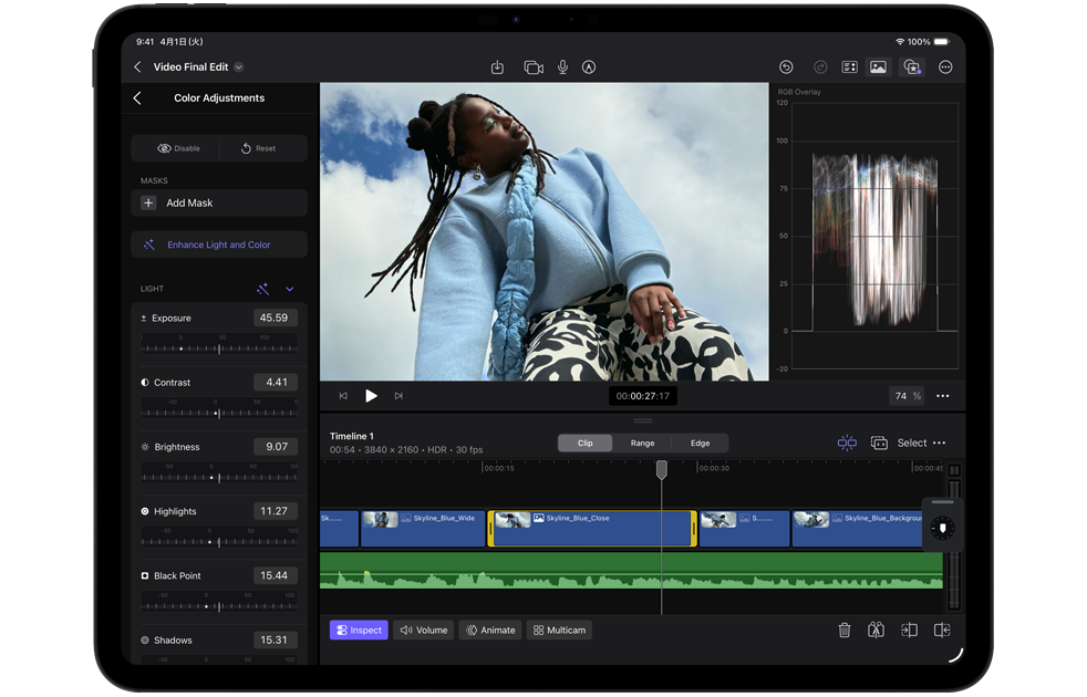 撮影する。編集する。共有する。すべてを一台で。iPad Proは、LiDARスキャナを搭載したProのカメラシステム、スタジオ品質のマイク、4つのスピーカーを備えています。4K ProResビデオを撮影したり、ポッドキャストを録音したり。入力セレクタを使って、それぞれのアプリに最適なマイクも選べます。