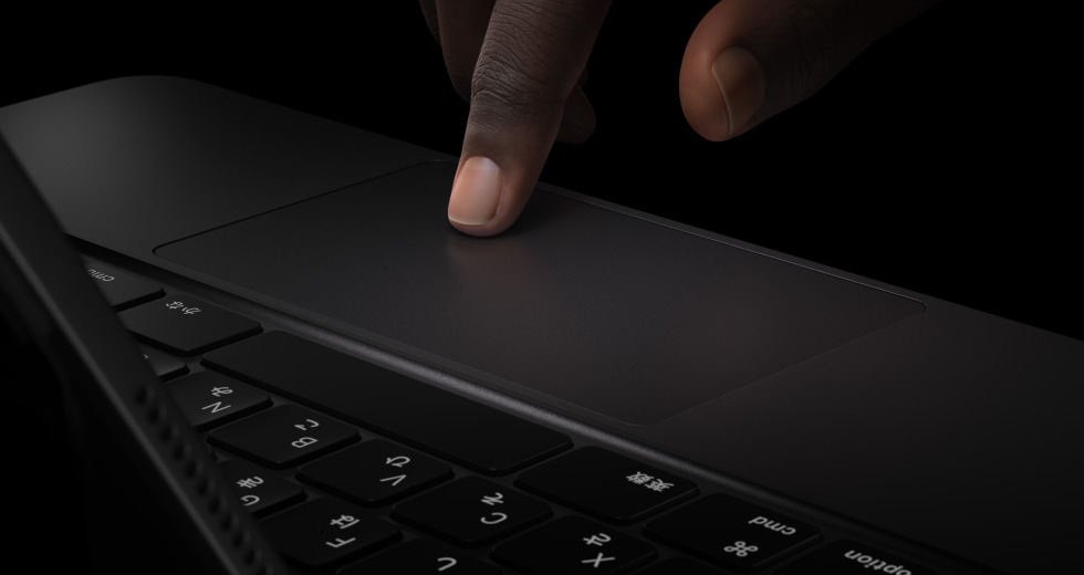 Magic Keyboardは、驚くほど快適なキーボードとトラックパッドを搭載12。薄くてポータブルなデザインで、アルミニウムのパームレストも用意されています。ファンクションキー列が加わり、大きなガラス製トラックパッドは触覚フィードバックに対応。高い精度が求められる作業やMulti-Touchジェスチャーに理想的です。