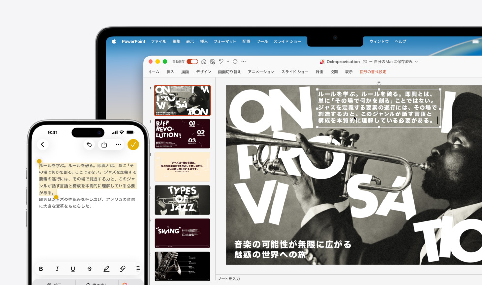 わずか1.23kgと驚くほど軽量で、薄さは1cmあまりのMacBook Air。バッグに軽やかに収まるので、