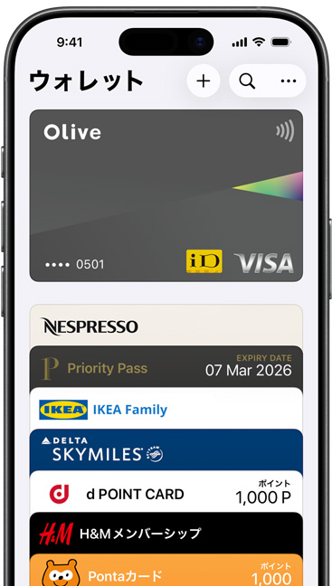 ウォレットは、あなたのiPhone上に用意されています。クレジットカード、マイナンバーカード、Suica、PASMO、ICOCA、イベントのチケット、車のキーなど、すべてを一つの場所で安全に管理できるアプリです。使うために必要なのは、iPhoneまたはApple Watchだけ。より多くのものを、より自由に持ち歩けます。