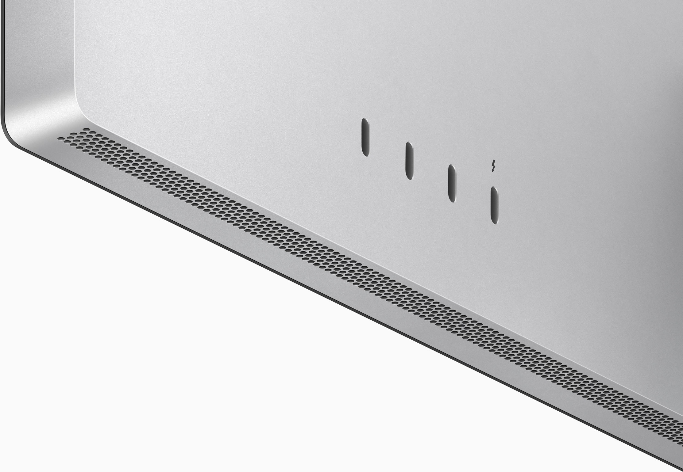 Three USB‑C ports let you connect, power, and charge devices — from networking and external drives to your keyboard, mouse, or iPhone. The Thunderbolt port connects Studio Display to your Mac with a single cable. That same port can charge compatible Mac notebooks — and even fast‑charge a 14‑inch MacBook Pro.