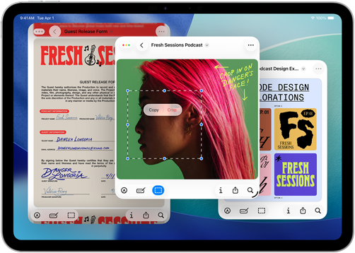 Organiser vinduene dine med et lite sveip til venstre eller høyre. Nå kan du dessuten dele iPad-skjermen inn i tre eller fire deler.