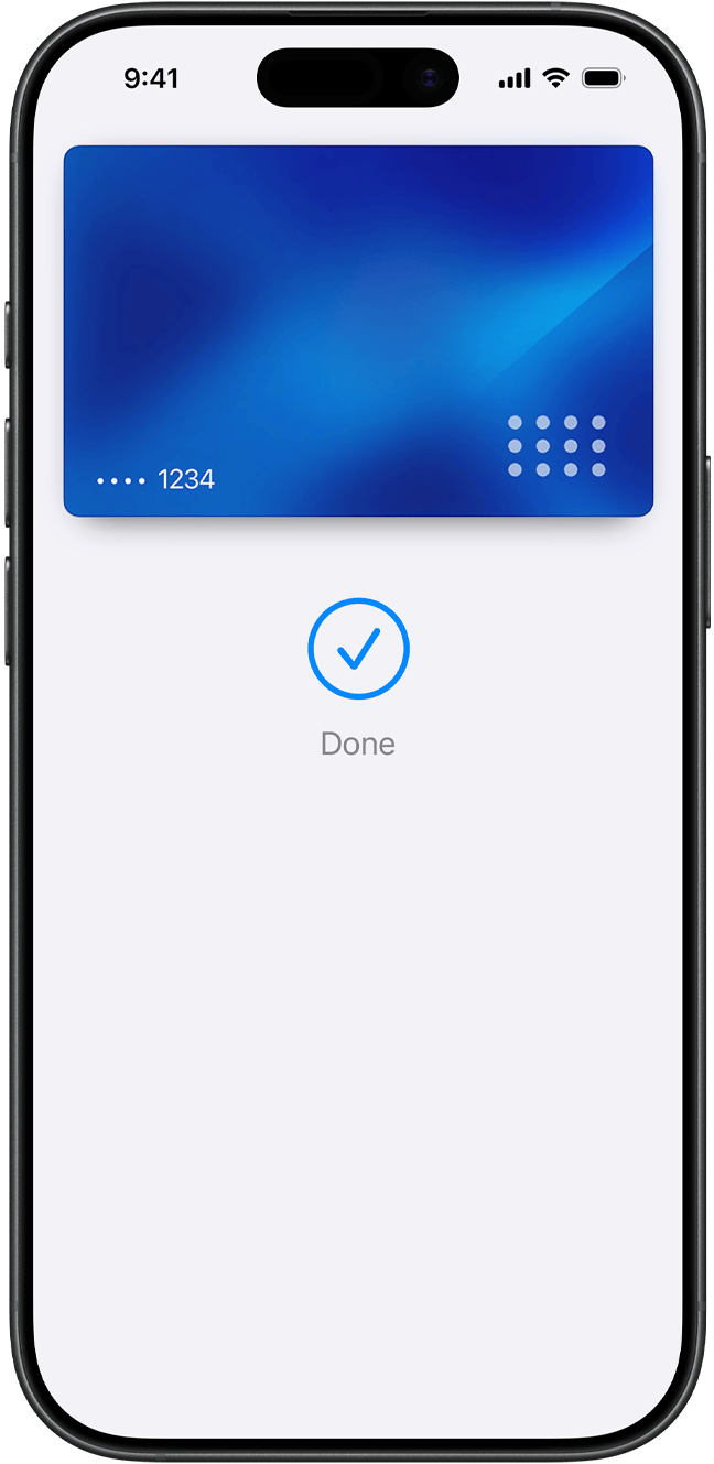 Dodanie karty kredytowej lub debetowej jest bardzo proste – otwórz apkę Portfel, stuknij w niej symbol plusa, a następnie przyłóż kwalifikującą się kartę do tyłu iPhone’a1. Lub dodaj kartę ręcznie – otwórz apkę Portfel, stuknij symbol plusa i wykonaj polecenia wyświetlane na ekranie. Następnie musisz zweryfikować swoje dane w banku lub u wystawcy karty. Jeśli masz sparowany Apple Watch, możesz też dodać kartę do zegarka. A gdy wymienisz iPhone’a na nowszy model, karty przeniesiesz na nowe urządzenie jednym prostym krokiem.
