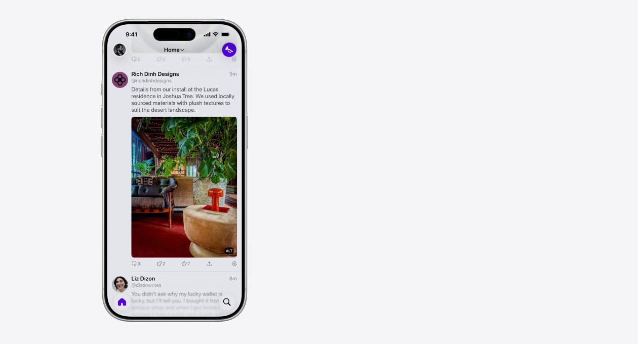 W aplikacjach elementy sterujące z Liquid Glass odbijają i załamują tła oraz płynnie zmieniają kształt, żeby lepiej eksponować treści.