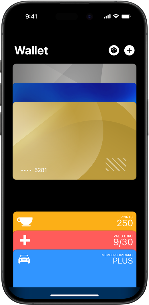 • Apple Wallet is an app on iPhone and Apple Watch that securely and conveniently organizes your credit and debit cards, transit passes, boarding passes, tickets, rewards cards, and more — all in one place.