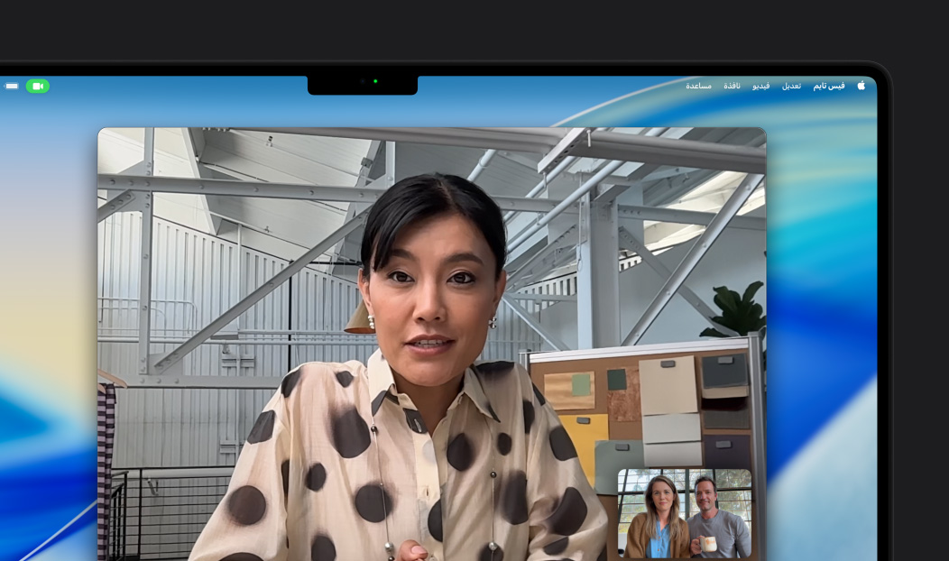 خلال مكالمات الفيديو، يبقيك نمط "في الوسط" في قلب الإطار حتى لو تحرّكت أو انضم إليك آخرون.