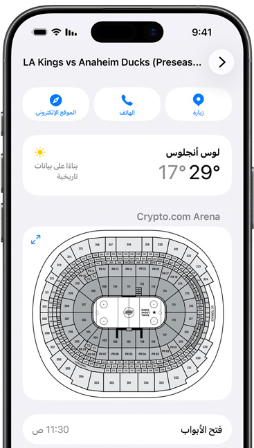 • Apple لا تشارك أرقام بطاقاتك الفعلية مع التجار ولا تخزَّن على سيرفراتها إطلاقاً، فمعلومات بطاقاتك تُربط بكل أمان بحساب Apple الخاص بك لمساعدتك على إضافة بطاقاتك وتذاكرك وإدارتها عبر مختلف أجهزتك.