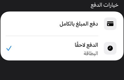 إن كنت قد أضفت إلى تطبيق المحفظة بطاقة ائتمان أو سحب أو بطاقة مسبقة الدفع أو بطاقة خاصة بأحد المتاجر أو بطاقة مكافآت متوافقة مع Apple Pay، ما عليك سوى النقر مرتين على زر الشاشة الرئيسية لفتح تطبيق المحفظة واستخدام بطاقتك مع القارئ. وفي موديلات iPhone X أو أحدث، انقر مرتين على الزر الجانبي. اعرف المزيد