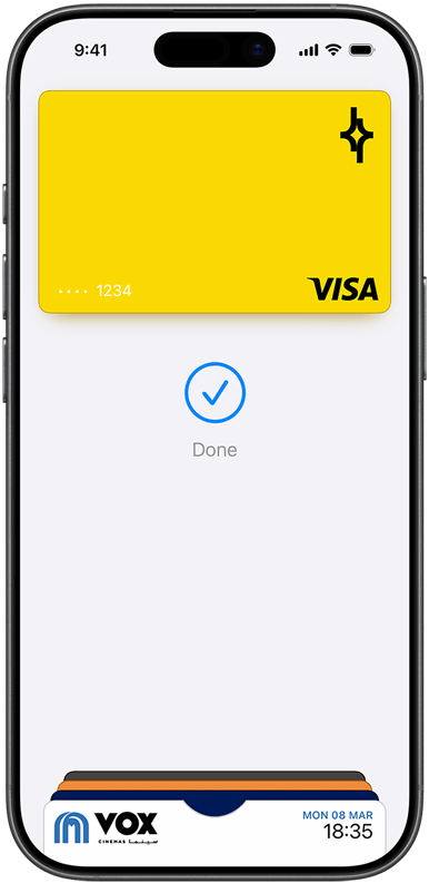 An easier way to pay for public transport in Riyadh. With Express Mode, you don’t need to authenticate your payment with Face ID or even unlock your device. So paying for the bus or metro is quick and easy. Simply tap your iPhone or Apple Watch on the card reader and go.