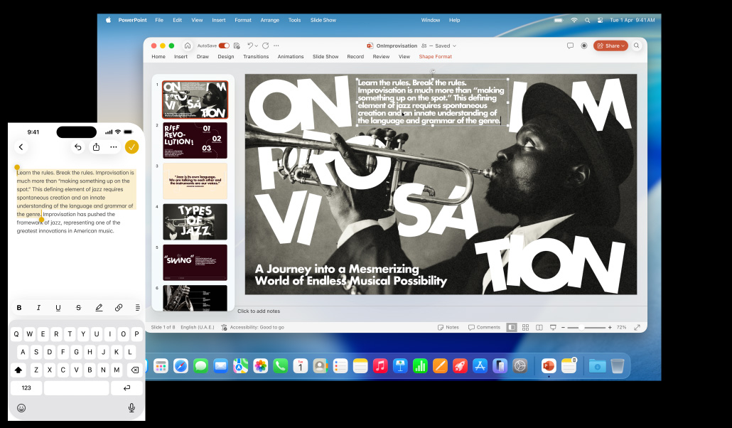 Mac, iPhone, iPad, and Apple Watch are amazing on their own. And they’re even more amazing when used together. Thanks to Continuity, your devices work together seamlessly — unlocking a world of powerful features. Start an email on your Mac and finish it on your iPad. Snap a photo on your iPhone and see it appear on your Mac. Or make a call without reaching for your iPhone.1 That’s the magic of Continuity.