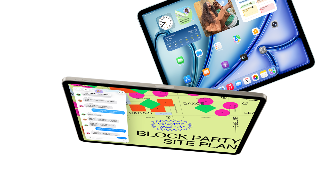 iPadOS 26 introduces Liquid Glass, a stunning new design with a vibrant look and game-changing enhancements that put iPad Air productivity on a new level. A reimagined, intuitive windowing system gives you greater power and flexibility than ever before. Run pro apps, play high-performance games, and take on creative projects of any size with a natural, touch-first experience.