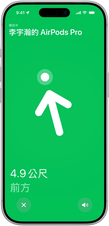 輕輕鬆鬆,就能確切地找出 AirPods Pro 所在的位置。充電盒採用新一代超寬頻技術,「精確尋找」的距離擴大至 1.5 倍9充電盒更內建揚聲器,就算 AirPods 掉到沙發墊深處,一樣找得到。