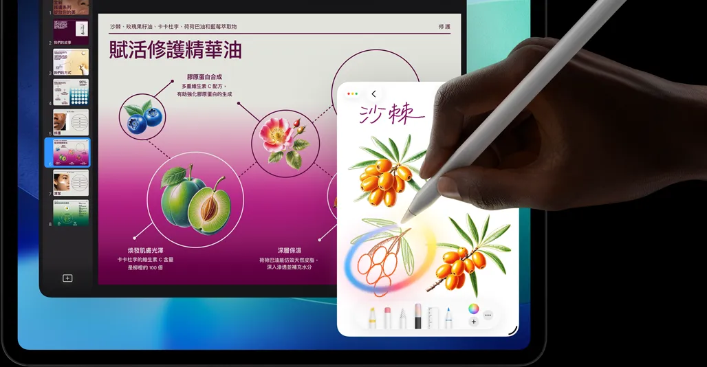 此外,Apple Pencil Pro 增添更多功能,讓你呈現奇思妙想,比以往更生動2。