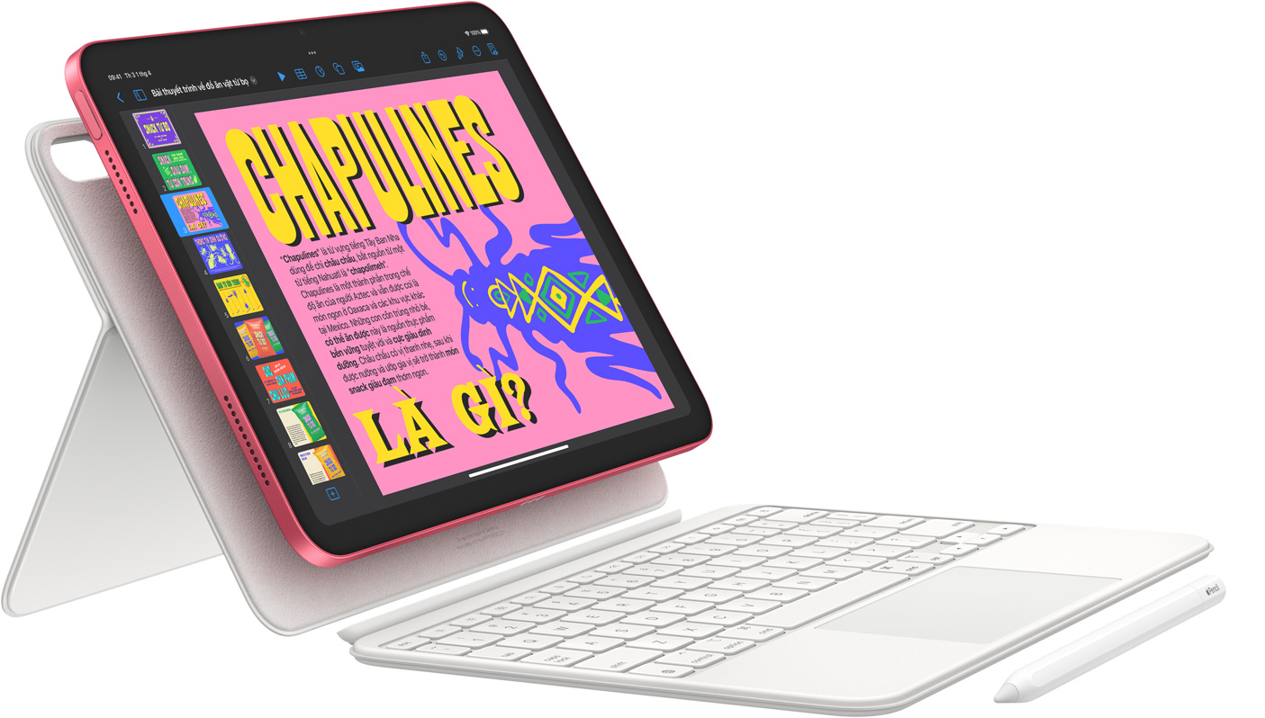 Tiến xa hơn với những gì bạn có thể làm cùng các phụ kiện thiết yếu được thiết kế riêng cho iPad, như Apple Pencil và Magic Keyboard Folio. Bổ sung Smart Folio đầy màu sắc để bảo vệ mặt trước và mặt sau. Đồng thời kết nối với các ổ đĩa, dock, màn hình và nhiều hơn thế với USB-C.2